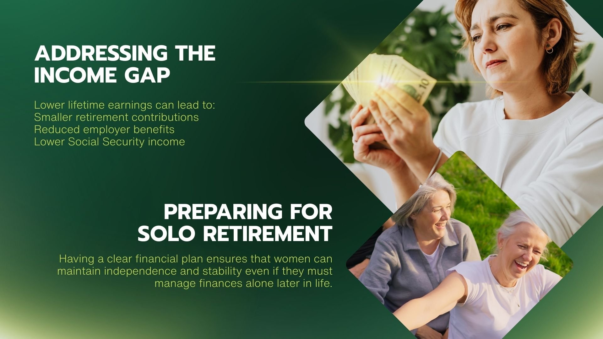 Having a clear financial plan ensures that women can maintain independence and stability even if they must manage finances alone later in life.